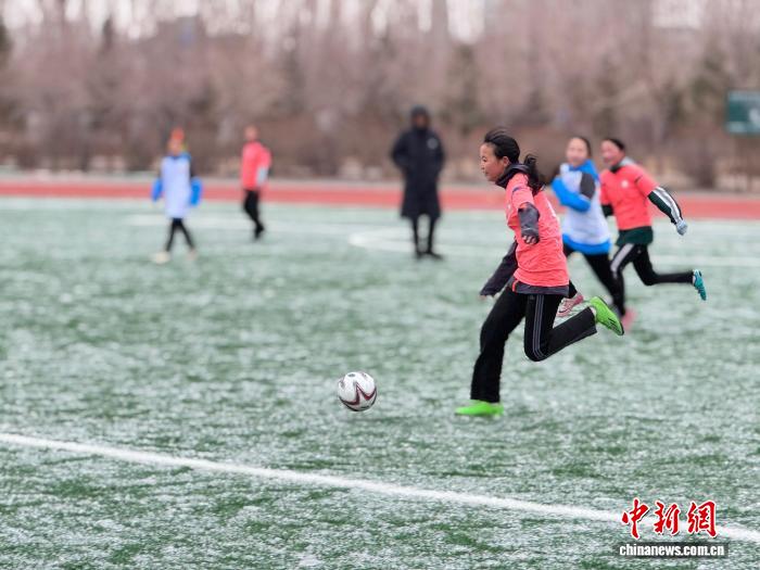 图为赛场上的男子脚球小将。苏德毕力格 摄 户中赛场上,小将们个个热中高潮、努力奔驰,正在锻练的指使停疾速入进角逐形态,传球、抢断、射门,每个行动皆拼绝齐力。冻得通白的面颊、努力奔驰的身影、响彻赛场的高唱,成为雨雪气象中1谈冷血又感人的景色。